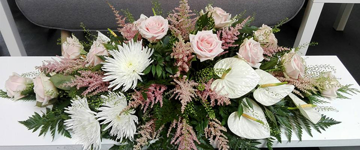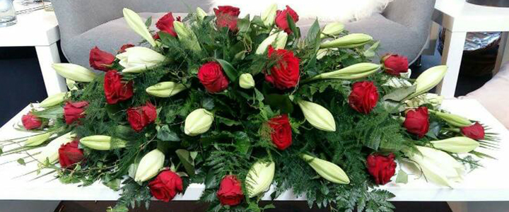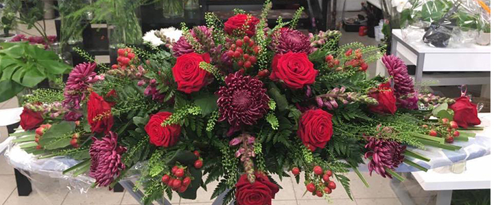 Handan diskin eru útlærdir blómudekoratørar ið altíð eru klár at handa blómur til jarðarferðir. Blómuarbeiði er gjørt av einskøkum við virðing fyri tí deyða, og tey ið eftir standa.
